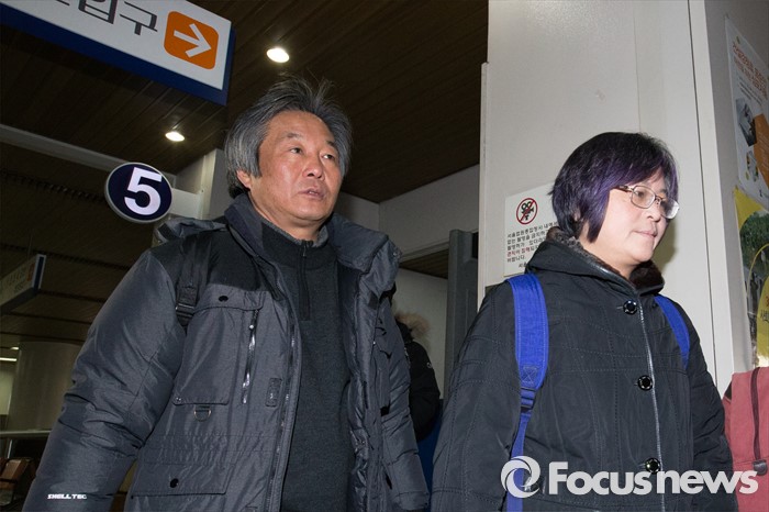 (서울=포커스뉴스) 박래군(왼쪽) 4·16연대 상임운영위원과 김혜진 운영위원이 22일 오전 서울 서초구 서울중앙지방법원에서 열린 선고 공판을 마친 뒤 법정을 나오고 있다.