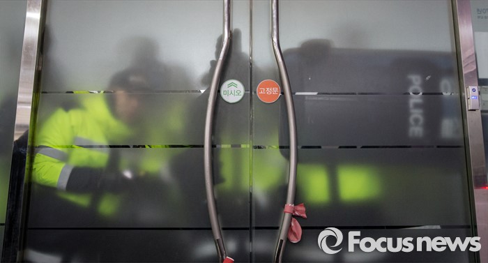 (서울=포커스뉴스) 22일 오후 서울 중구 서울고용노동청을 민원실을 점거한 알바노조원들이 경찰과 충돌, 경찰이 출구를 봉쇄하고 있다. 알바노조 조합원 100여명은 근로감독관 일처리 개선을 촉구하며 노동청을 기습 점거했다.