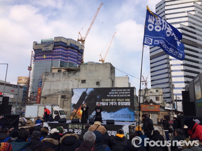 최종민 전국민주노동조합총연맹(민주노총) 위원장 직무대행도 추모대회에 참석해 “7년이 지났지만 해결된 것이 없다”며 “‘용산참사’의 배후에는 재벌들의 이익을 옹호해주는 권력이 있었다”고 비판했다.
