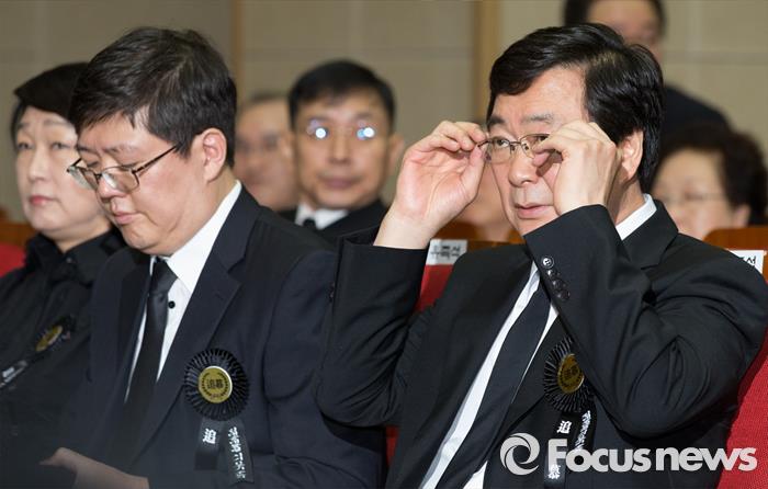 | △ 추도식 자리한 김 전 대통령 아들 |