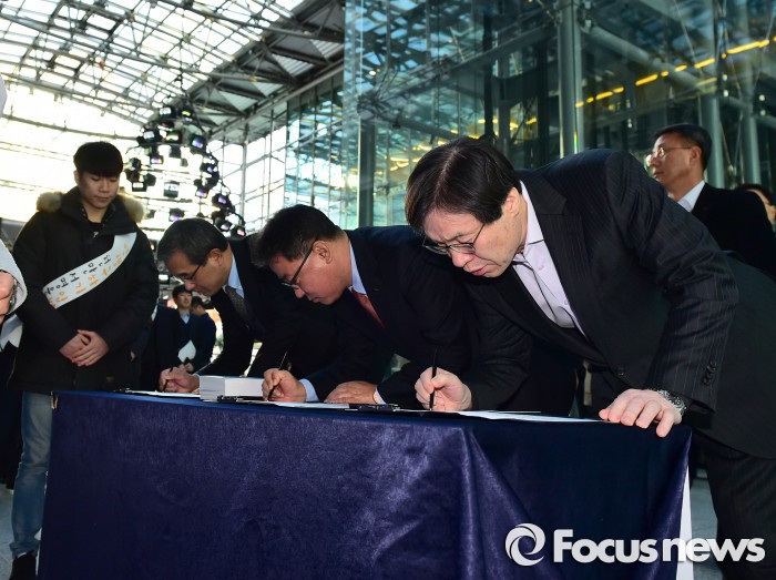 이날 서명대는 포스코센터 외에도 포항제철소 3곳, 광양제철소 2곳에 포항상공회의소와 광양상공회의소의 지원으로 각각 설치됐다.