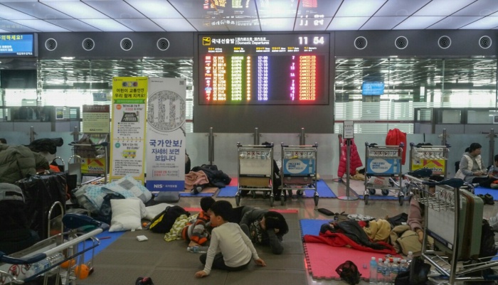 | △ 제주국제공항 승객들 삼일째 노숙 |