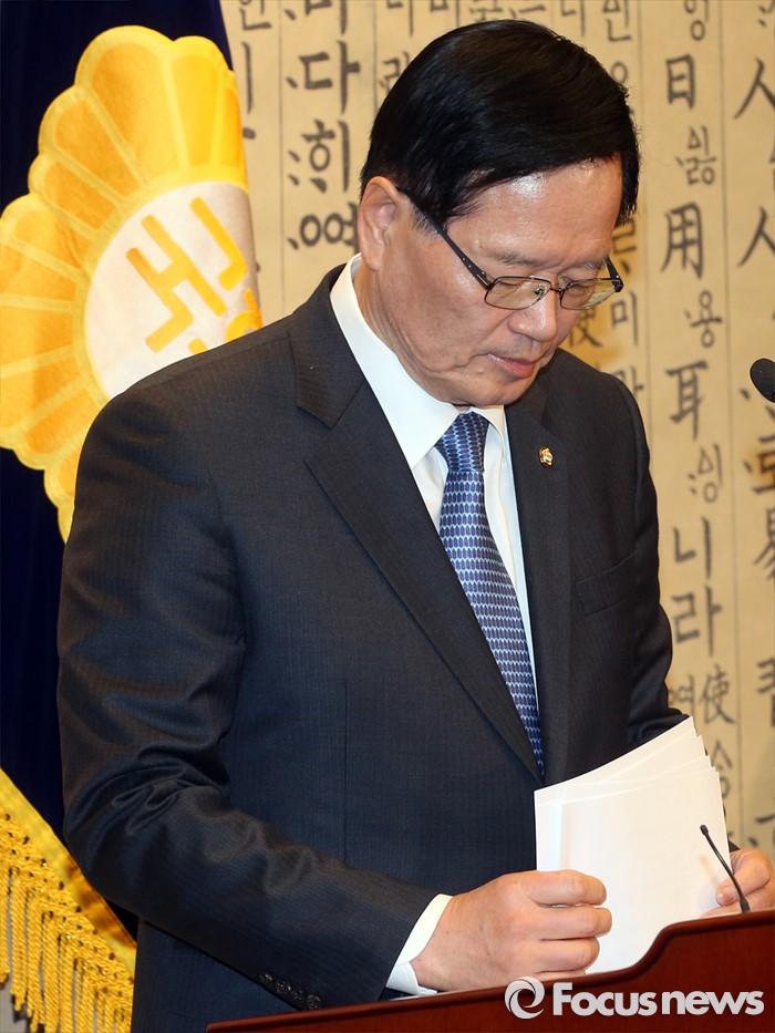 (서울=포커스뉴스) 정의화 국회의장이 25일 오후 서울 여의도 국회에서 20대 총선 불출마 선언 및 국회 선진화법 개정안에 대한 중재안 발표 기자회견을 마친 뒤 퇴장하고 있다.