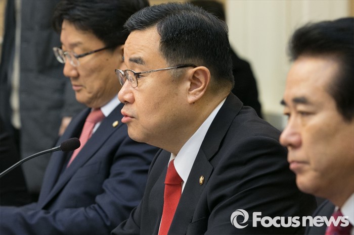(서울=포커스뉴스) 김정훈(가운데) 새누리당 정책위의장이 26일 오전 서울 여의도 국회 귀빈식당에서 열린 '임금 체불 및 하도급대금 부조리 해결' 합동 당정협의에 참석해 모두발언하고 있다.
