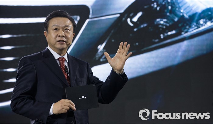 (서울=포커스뉴스) 26일 오전 서울 강남구 그랜드 인터컨티넨탈 서울 파르타스에서 열린 '기아차 올 뉴 K7 신차발표회'에서 황정렬 기아차 PM(프로젝트매니지먼트) 총괄 전무가 발표를 하고 있다.