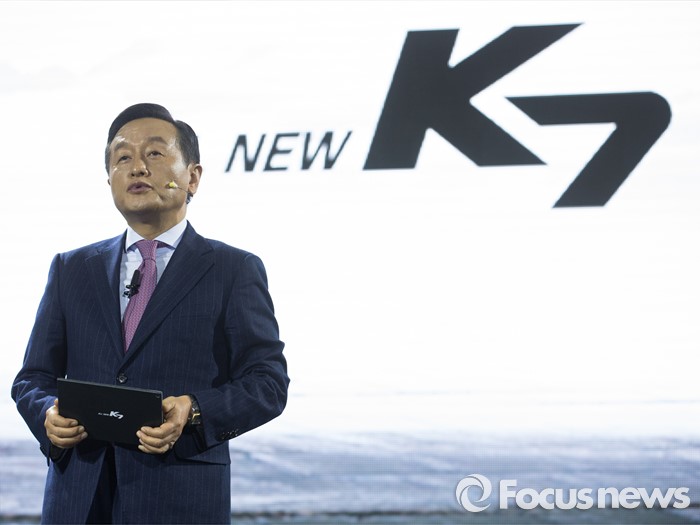 (서울=포커스뉴스) 26일 오전 서울 강남구 그랜드 인터컨티넨탈 서울 파르타스에서 열린 '기아차 올 뉴 K7 신차발표회'에서 김창식 기아차 국내영업본부장(부사장)이 발표를 하고 있다.
