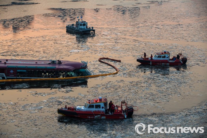 (서울=포커스뉴스) 26일 오후 2시 28분쯤 서울 광진구 영동대교 남단 부근 한강에서 이랜드 크루즈 유람선이 침수하는 사고가 발생했다.
