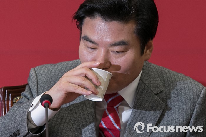 (서울=포커스뉴스) 원유철 새누리당 원내대표가 27일 오전 서울 여의도 국회에서 열린 최고중진연석회의에 참석해 물을 마시고 있다.