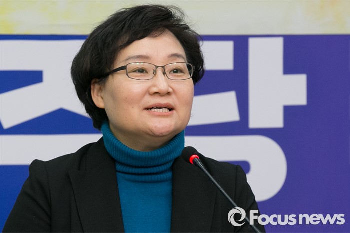 (서울=포커스뉴스) 문미옥 한국여성과학기술인지원센터 기획정책실장이 27일 오전 서울 여의도 국회 더불어민주당 대표회의실에서 입당 기자회견을 하고 있다.