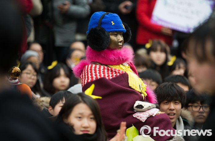 (서울=포커스뉴스) 27일 오후 서울 종로구 구 일본대사관 앞에서 열린 제 1215차 일본군 위안부 문제 해결을 위한 정기수요집회에서 소녀상이 자리를 지키고 있다.