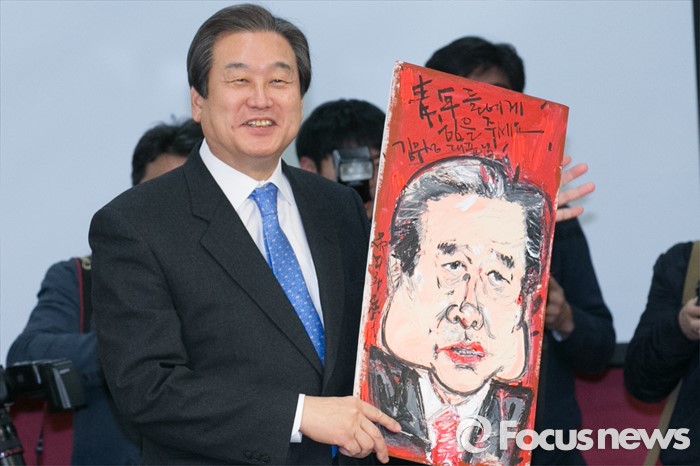 (서울=포커스뉴스) 김무성 새누리당 대표가 27일 오후 서울 여의도 국회 의원회관에서 열린 청년 공천 설명회에 참석해, 한 예비후보가 선물한 캐리커쳐를 들고 환하게 웃고 있다.
