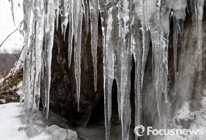 (철원=포커스뉴스) 26일 강원 철원군 현무암 협곡 주상절리 위로 고드름이 얼어 있다.