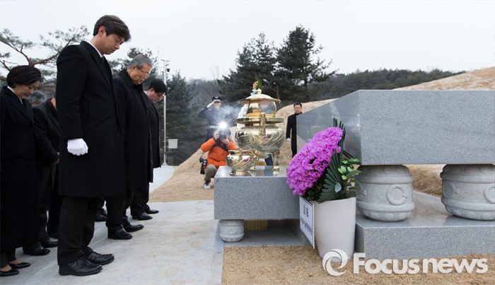 (서울=포커스뉴스) 28일 오전 서울 동작구 국립서울현충원에서 김종인 선거대책위원장 겸 비대위원장이 김영삼 전 대통령 묘역 참배를 하고 있다.