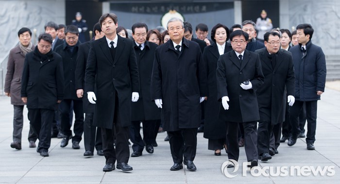 (서울=포커스뉴스) 28일 오전 서울 동작구 국립서울현충원에서 김종인 선거대책위원장 겸 비대위원장이 현충탑 참배를 마친 뒤 나서고 있다.