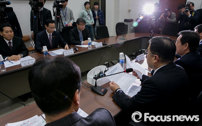 (서울=포커스뉴스) 28일 오전 서울 여의도 국회에서 열린 중고자동차 시장 선진화 관련 당정협의에 참석한 김정훈 새누리당 정책위의장이 모두발언을 하고 있다.