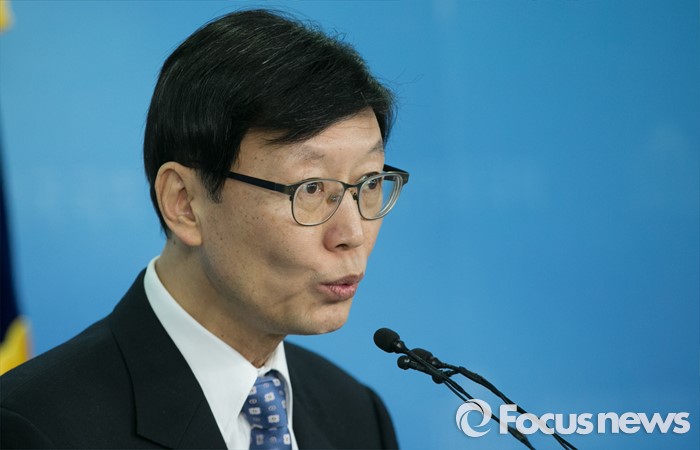 (서울=포커스뉴스) 황창화 전 국회도서관장이 28일 오전 서울 여의도 국회 정론관에서 기자회견을 열고 더불어민주당 후보로 20대 총선 서울 노원병 지역에 출마할 것을 선언하고 있다.
