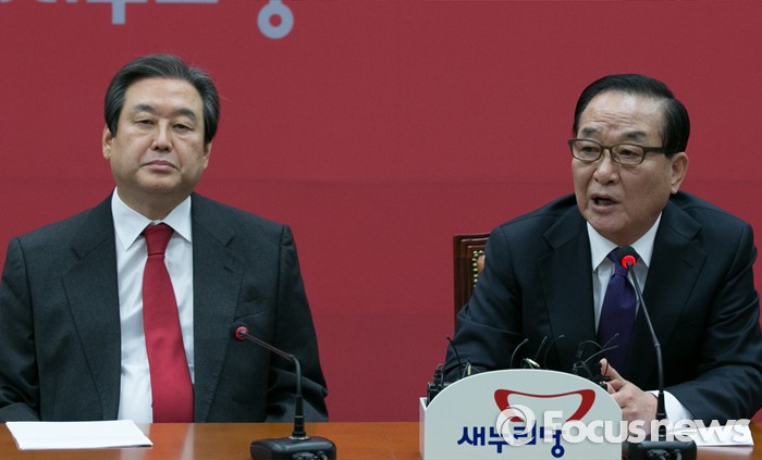 (서울=포커스뉴스) 서청원(오른쪽) 새누리당 최고위원이 28일 오전 서울 여의도 국회에서 열린 최고위원회의에 참석해 발언하는 동안, 김무성 대표가 경청하고 있다. 이 자리에서 서 최고위원은 김 대표를 향해 “김무성 대표가 권력자 발언을 해서 왜 이런 이야기를 해서 분란을 일으키느냐”고 정면 비판했다.