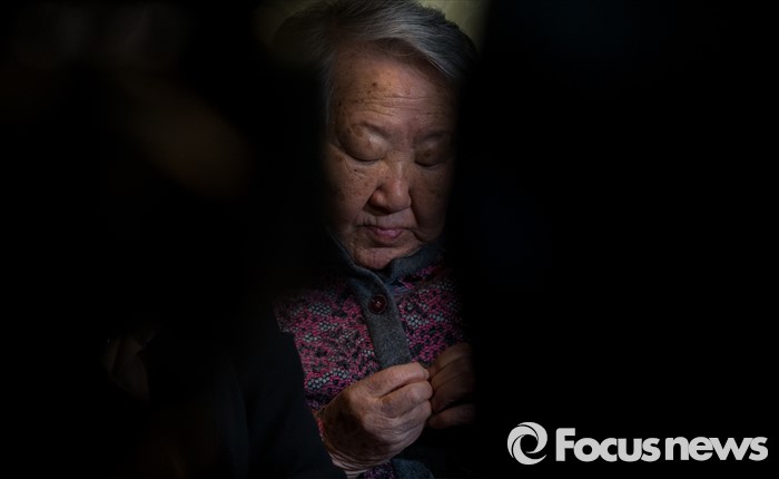 (서울=포커스뉴스) 28일 오전 서울 마포구 평화의 우리집에서 열린 일본군'위안부' 문제합의 관련, 유엔 청원서 제출 기자회견에 참석한 길원옥 할머니가 굳은 표정을 짓고 있다.