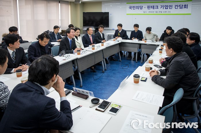(서울=포커스뉴스) 28일 오후 서울 강남구 창업지원센터에서 열린 '국민의당-핀테크 기업인 간담회'에 참석한 안철수 인재영입위원장이 인사말을 하고 있다.