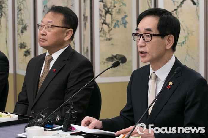 (서울=포커스뉴스) 이준식(오른쪽) 사회부총리 겸 교육부 장관이 29일 오전 서울 여의도 국회에서 열린 저출산 대책 당정협의에 참석해 발언하는 동안 유일호 경제부총리가 경청하고 있다.