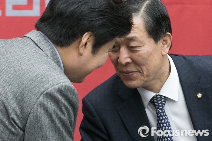 (서울=포커스뉴스) 원유철(왼쪽) 새누리당 원내대표와 황진하 사무총장이 29일 오전 서울 여의도 국회에서 열린 원내대책회의에 참석해 악수하고 있다.