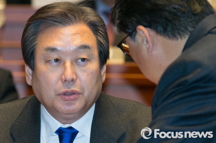 (서울=포커스뉴스) 김무성(왼쪽) 새누리당 대표와 조원진 원내수석부대표가 29일 오후 서울 여의도 국회에서 열린 의원총회에 참석해 논의하고 있다.