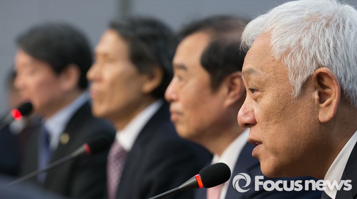 (서울=포커스뉴스) 29일 오후 서울 여의도 국회 의원회관에서 열린 '참여정부 시절 청와대 정책실장을 지낸 김병준 국민대 교수 초청 간담회, 한국정치 제3의 길을 말한다'에 참석한 김한길 국민의당 상임부위원장이 인사말을 하고 있다.