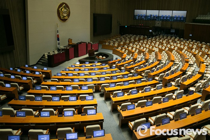(서울=포커스뉴스) 29일 오후 서울 여의도 국회 본회의장 의원석이 예정된 본회의 개의 시간을 훌쩍 넘기고도 텅 비어 있다. 이날 여야는 본회의를 열어 기업활성화법(일명 '원샷법')을 통과 시키기로 했으나, 최종협상에서 난항을 겪고 있는 것으로 알려졌다.