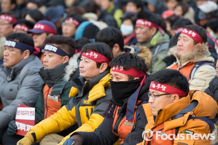 (서울=포커스뉴스) 30일 오후 서울광장에서 열린 '민주노총 전국노동자대회'에서 민주노총 조합원들이 정부의 '일반 해고'와 '취업규칙 변경' 양대 지침 철회와 노동개악 중단을 촉구하는 집회를 열고 있다.