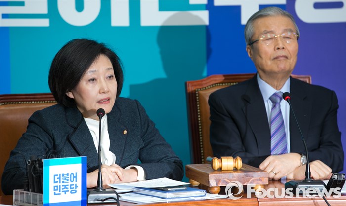 박 비대위원은 정부·여당을 향해 "그렇게 애걸하는 원샷법이 통과된 후 경제가 살아나지 않는다면 어떻게 책임을 질 것인가. 분명한 답을 듣고 싶다"고 말했다.박영선 더불어민주당 비대위원이 1일 오전 서울 여의도 국회에서 열린 비상대책위원회의에 참석해 발언을 하고 있다. 오른쪽은 김종인 비대위원장. 2016.02.01 박동욱 기자