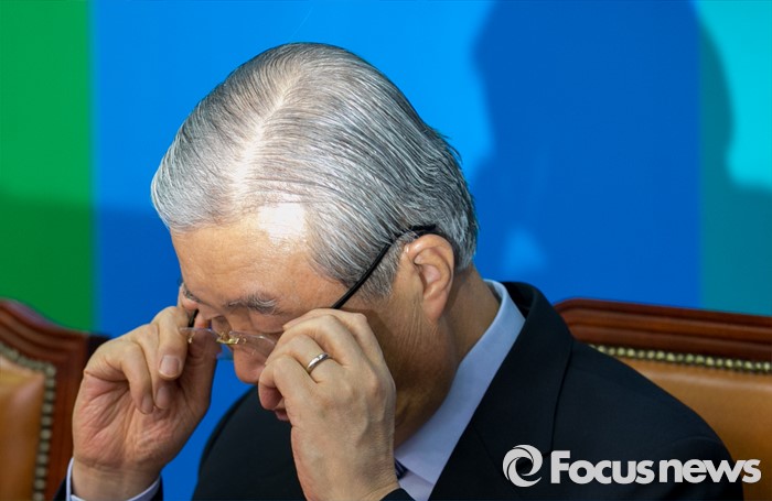 (서울=포커스뉴스) 1일 오전 서울 여의도 국회에서 열린 더불어민주당 유능한경제정당위원회, 더불어 잘사는 경제를 위한 '더불어 성장론' 정책발표 기자회견에 참석한 김종인 위원장이 안경을 고쳐쓰고 있다.