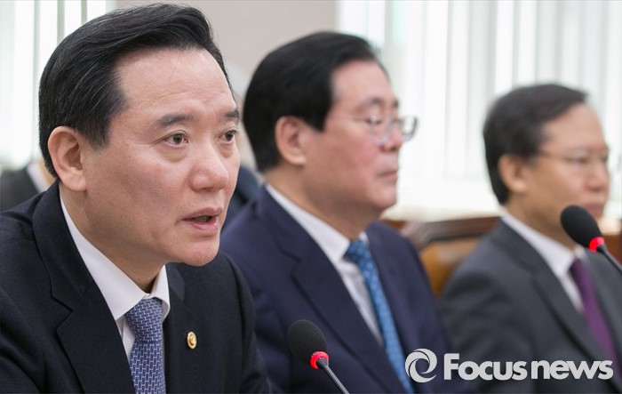(서울=포커스뉴스) 1일 오전 서울 여의도 국회에서 열린 법제사법위원회 전체회의에 참석한 김현웅 법무부 장관이 의원들의 질의에 답하고 있다. 이날 법사위는 외국로펌과 국내 로펌이 합작법무법인을 설립할 수 있도록 허용하는 내용의 외국법자문사법 개정안을 의결했다.