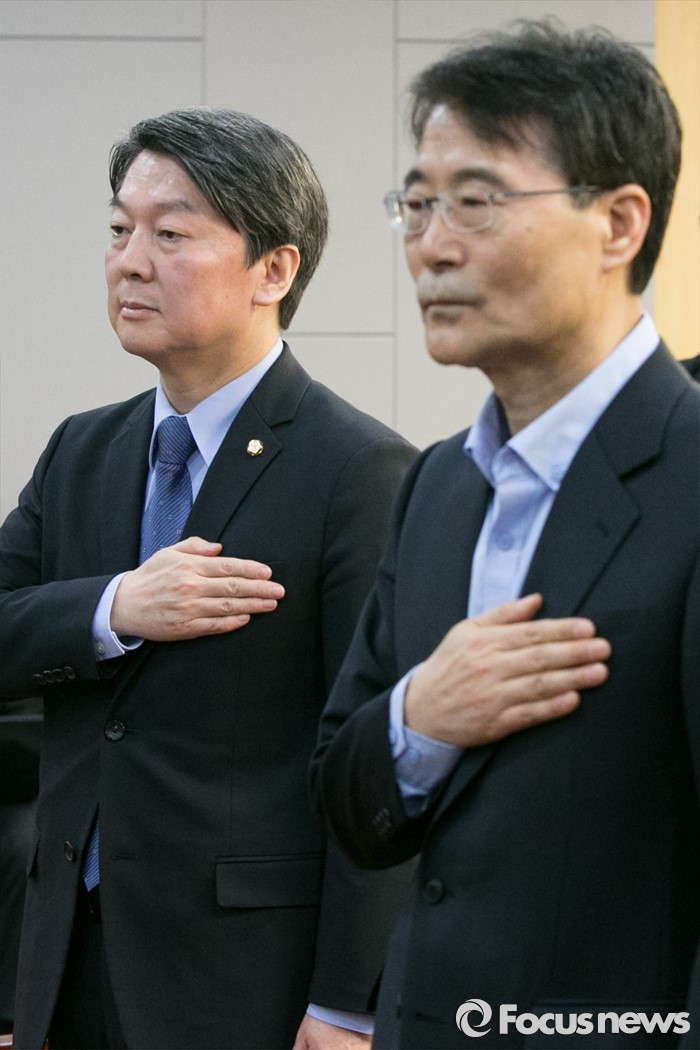 | △ 국민의례하는 안철수·장하성 |