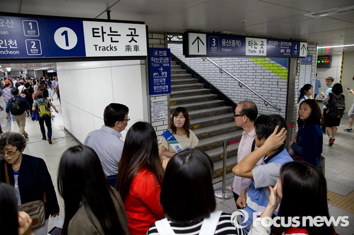(서울=포커스뉴스) 서울역에서 80대 여성이 스크린도어에 끼이면서 추락해 사망했다.