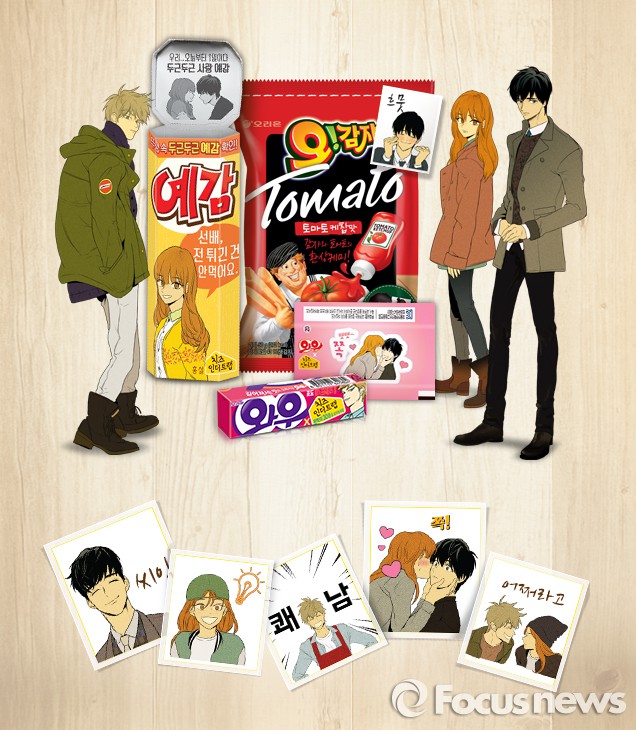 SNS 인증 이벤트도 열린다. 3월8일까지 오!감자‧예감‧풍선껌 와우 등 치인트 컬래버레이션 제품의 인증샷을 올리면 60종의 치인트 심쿵스티커를 담은 ‘한정판 스티커북’을 추첨을 통해 증정한다.오리온과 치즈인더트랩 컬래버레이션 이미지컷. <사진제공=오리온>