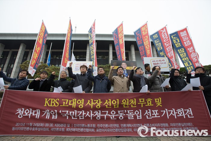 이들은 "지난해 11월 KBS 이사회가 고대영 현 사장에 대한 임명 제청 의결과정에 청와대가 개입했다는 폭로가 있었다"며 "이는 KBS 이사회의 심의·의결 권한을 부당하게 침해하고 방송법이 보장한 '방송의 독립성'을 현저하게 훼손한 중대 위법행위"라고 말했다