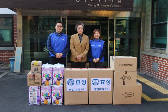 한편, 효성은 기업의 사회적 책임을 다하기 위해 취약계층 자립 지원, 문화예술 후원, 호국보훈 활동 등 국내∙외에서 지속적인 사회공헌활동을 펼치고 있다.효성 임직원들이 서울 용산구 후암동에 위치한 중증장애아동 요양시설 '영락애니아의 집'을 찾아 생필품을 전달했다.<사진제공=효성>