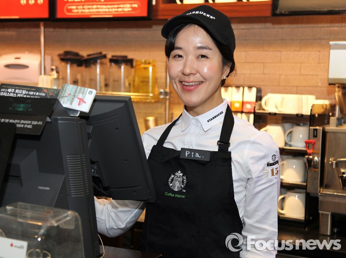 스타벅스는 한국장애인고용공단이 발표한 ‘2015년 장애인 고용 우수사업주’에 선정된 바 있다. 취업 취약 계층의 적극적 고용 공로를 인정받아 지난해 일자리 창출 정부포상 시상식에서 대통령 표창을 수상했다.권순미 올림픽공원남문점 부점장. 청각장애인 권순미씨는 스타벅스 코리아 최초의 장애인 부점장이다. <사진제공=스타벅스 코리아>