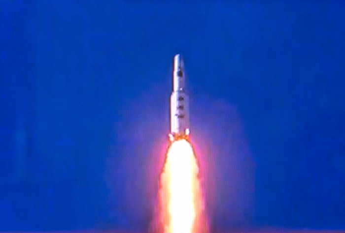 북한은 7일 오전 평안북도 철산군 동창리 미사일 발사장에서 장거리 미사일(로켓) 1발을 발사했다.북한 조선중앙TV가 7일 보도한 지구관측위성이라고 주장하는 광명성 4호의 발사장면. 2016.02.07 포커스뉴스포커스포토