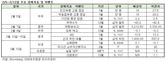 이번주 주목할 이벤트와 경제지표는 ▲미국 1월 소매판매 발표가 있다.