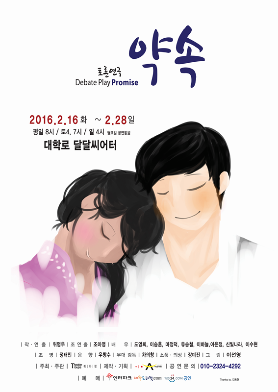 '약속'은 대학로에서 다소 접하기 힘든 토론연극이다. 진행되는 극을 보고 느끼는 것에 그치는 것이 아니라 연극에서 제기된 상황들 중 개선되어야 할 문제에 대해 관객들이 직접 참여해 다양한 관점으로 해결방안을 제시하는 방식으로 꾸려질 예정이다.