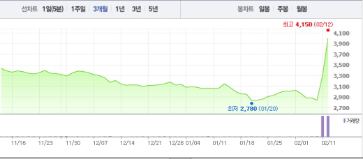 이날 오전 10시32분 현재 혜인은 전일 대비 700원(21.18%) 오른 4005원에 거래되고 있다.