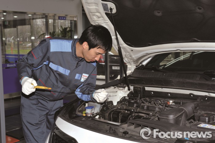 KARIN 관계자는 "소비자들이 합리적인 책정으로 느낄 수 있는 방향, 수리나 점검 시 소비자의 동의를 받고 진행하는 소비자들과의 약속, 수리내용에 대한 사전 정보를 제공해 한층 완벽한 수리에 무엇보다 필요성한 점"이라고 지적했다.정비사가 엔진오일을 점검하고 있다. <사진제공=보쉬>