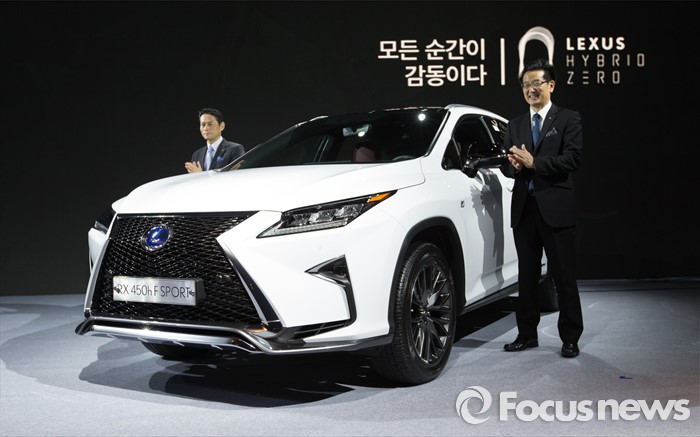 RX는 2006년 RX400h를 통해 한국에 상륙, 국산차와 수입차를 통틀어 국내 시장에 ‘하이브리드 시대’를 연 첫 모델이다.(서울=포커스뉴스) 17일 오전 서울 중구 신라호텔에서 카츠다 타카유키(오른쪽) 렉서스 RX 수석 엔지니어와 요시다 아키히사 한국도요타자동차 사장이 2016 New Generation RX를 공개하고 있다. 2016.02.17 김인철 기자