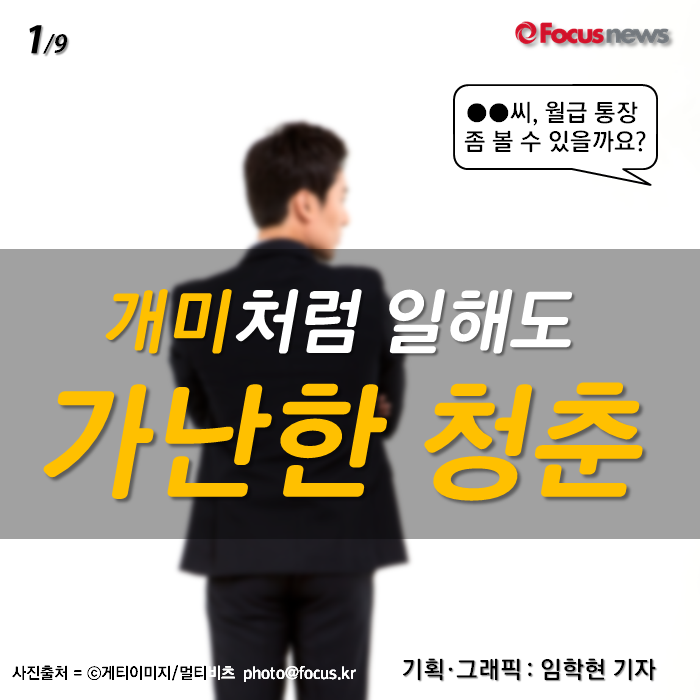 (서울=포커스뉴스) 청년들의 취업이 어려운 것은 어제오늘 일이 아닙니다만, 취업을 한 이후에도 살아가기 힘든 것은 마찬가지입니다. 개미처럼 일해도 늘 가난에 쫓기는 청춘들, 그들의 이야기를 들어보았습니다.