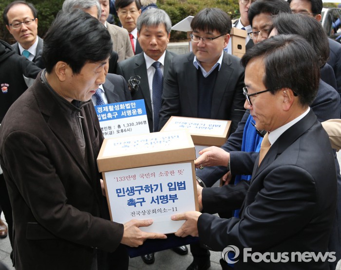 (서울=포커스뉴스) 글로벌 경기 악화와 북한 리스크 등으로 국내 경제가 어려움을 겪고 있는 가운데, 경제활성화 법안의 조속한 입법을 촉구하는 민의(民意)가 국회에 전달됐다.