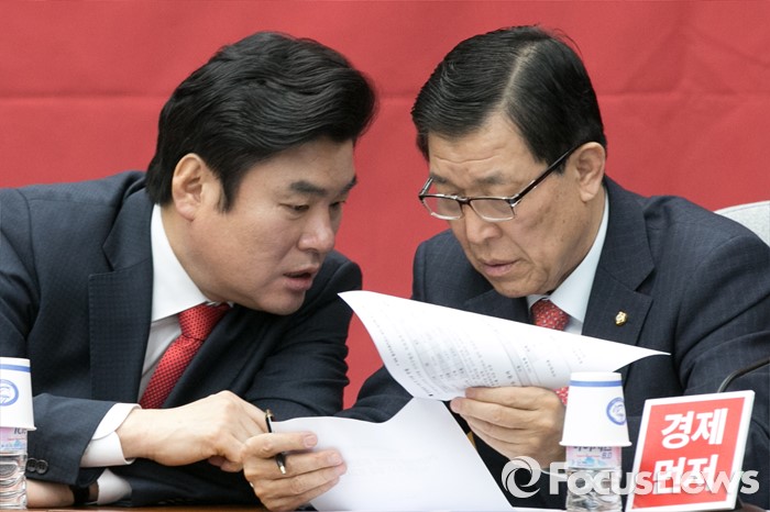 한편, 친박계인 조원진 원내수석부대표는 "각 시도당이 전수조사를 한 당원명부에서도 문제가 생기는데 전국적으로 확인되지 않은 안심번호를 가지고 조사할 때 어떻게 문제가 안 생기겠느냐"며 "시간이 없는 상태에서 문제가 생기면 누가 책임지나"라고 안심번호를 활용한 여론조사에 부정적인 시각을 드러냈다.원유철(왼쪽) 새누리당 원내대표와 황진하 사무총장이 23일 오전 서울 여의도 국회에서 열린 원내대책회의에 참석해 대화하고 있다. 2016.02.23 박철중 기자