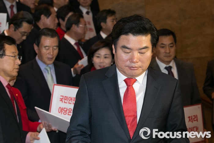 (서울=포커스뉴스) 원유철 새누리당 원내대표가 23일 오후 서울 여의도 국회 로텐더홀에서 테러방지법과 관련한 야당의 필리버스터에 대해, 규탄성명을 발표한 뒤 자리를 나서고 있다.