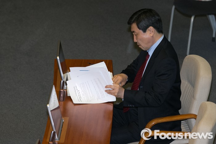 (서울=포커스뉴스) 이종걸 더불어민주당 원내대표가 23일 오후 서울 여의도 국회 본회의장에서 김광진 의원이 테러방지법과 관련해, 무제한 토론을 하는 동안 경청하고 있다.