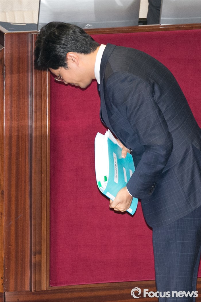 (서울=포커스뉴스) 김광진 더불어민주당 의원이 24일 오전 서울 여의도 국회 본회의에서 테러방지법과 관련해, 무제한 토론을 마친 뒤, 인사하고 있다.